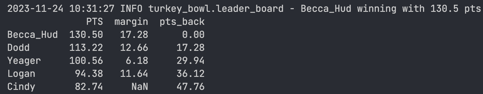 Full log of pull results